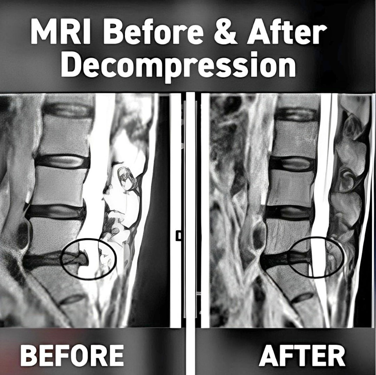 🔹 Spinal Decompression — gently stretches your lower back to creates 4mm of space between vertebrae (MRI proven).